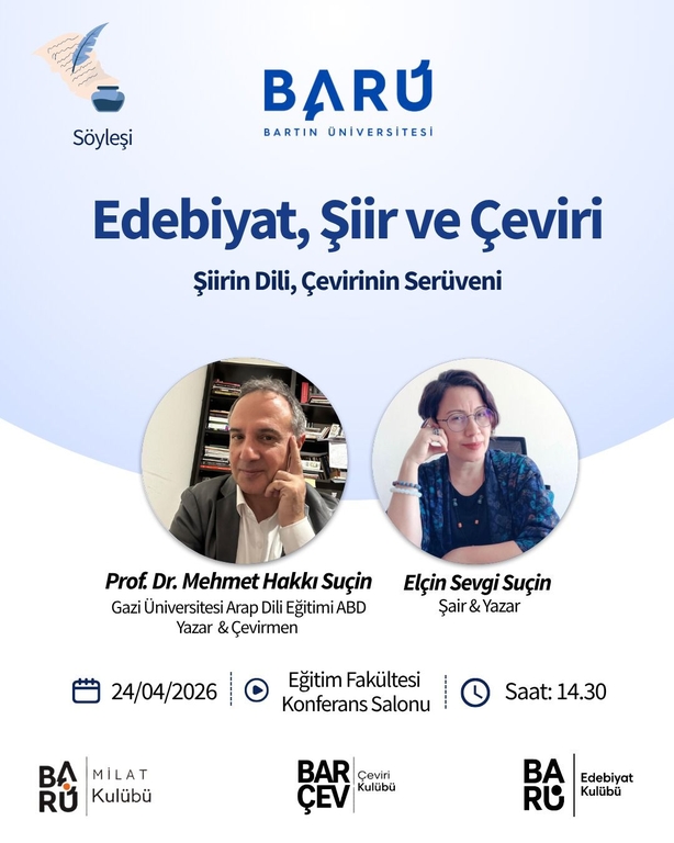 Üniversitemiz bünyesinde faaliyet gösteren üç öğrenci kulübünün iş birliğiyle hazırlanan Edebiyat, Şiir ve Çeviri (Şiirin Dili, Çevirinin Serüveni) programına davetlisiniz.