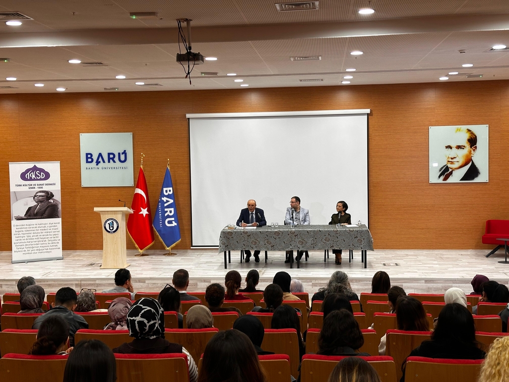 Bartın Üniversitesi Türk Dili ve Edebiyatı Bölümü ve Kariyer Merkezi ile İzmir Türk Kültür ve Sanat Derneği iş birliğinde düzenlenen “Sâmiha Ayverdi Anma Paneli”, 17 Nisan 2026 tarihinde saat 10.30’da Kutlubey Yerleşkesi Rektörlük Konferans Salonu’nda gerçekleştirildi. Programa Bartın Üniversitesi Rektörü Prof. Dr. Ahmet Akkaya da katıldı.